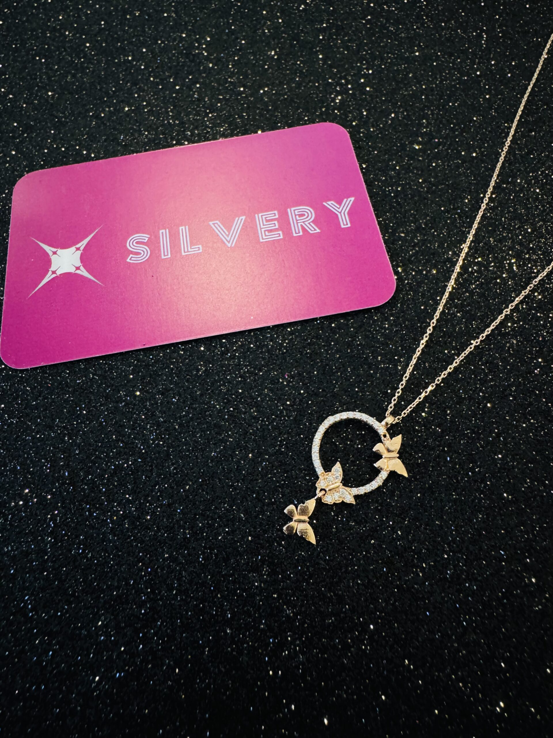 Graceful butterflies dancing in a circle of shine 🦋✨ Our Butterfly Dreams Necklace is crafted in 925 sterling silver to remind you that beauty is found in every transformation. #SilveryStyle #ButterflyNecklace #925Silver