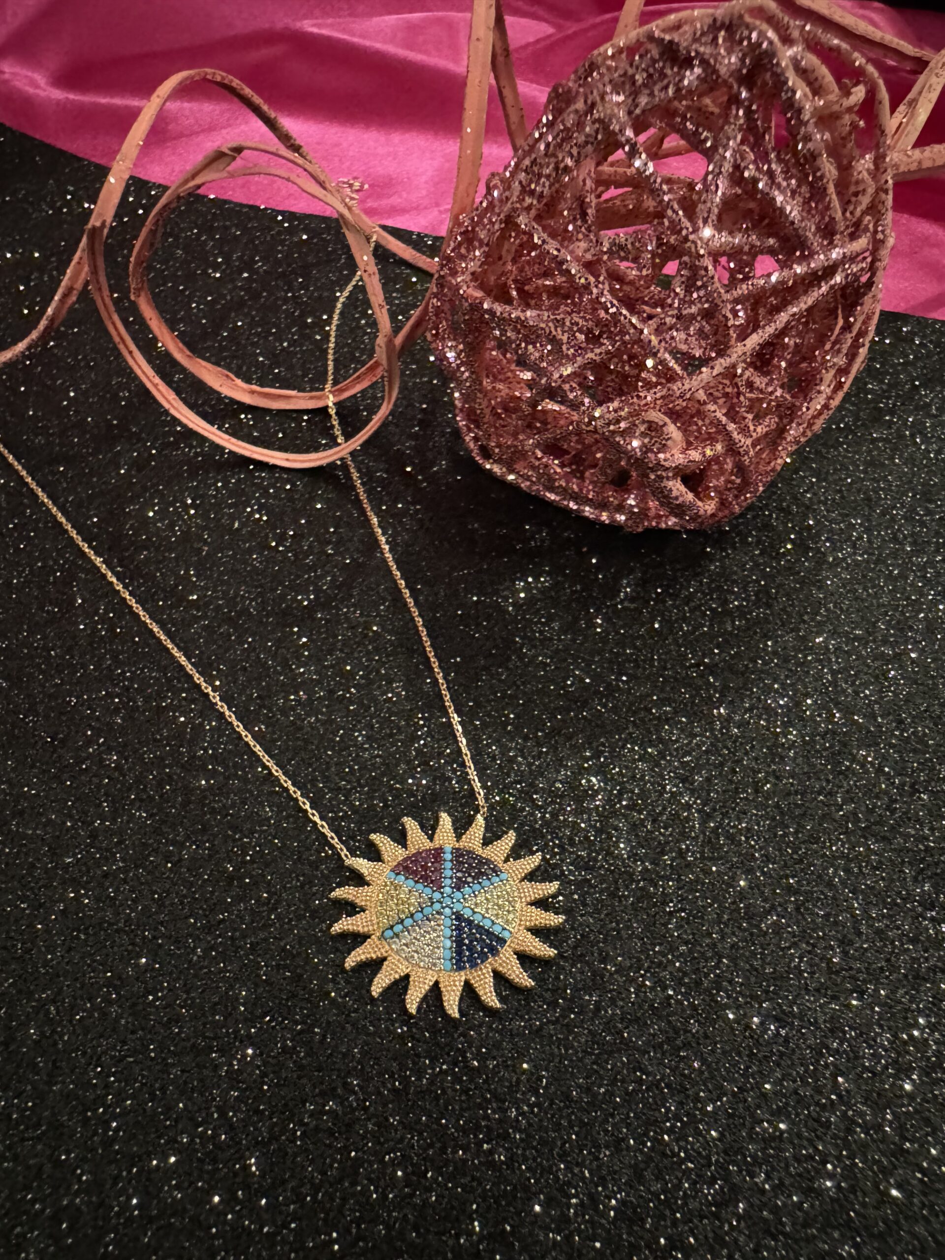 ☀️✨ Shine bright and embrace your inner glow with our dazzling sunburst pendant! Crafted with shimmering stones in vibrant blue and gold tones, this piece radiates energy and elegance. 💙💛